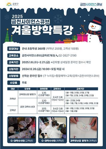 프로그램에 관심이 있는 금천구 초등학생은 홍보물의 정보무늬(QR코드) 또는 금천구청 누리집의 `통합예약`-`교육/강좌`-`금천사이언스큐브`에 접속해 선착순으로 신청하면 된다.