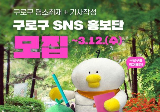 구로구가 구의 숨은 매력을 널리 알릴 ‘구로구 소셜네트워크 서비스(SNS) 홍보단’을 3월 7일부터 3월 12일까지 모집한다.