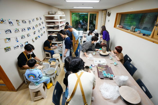 2024년 청자 가마터 체험장 어린이날 행사 참여한 가족들의 모습