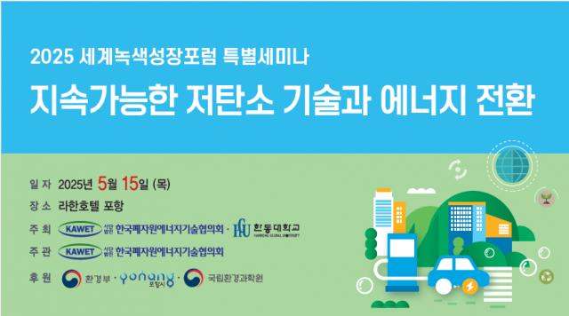 한국폐자원에너지기술협의회는 오는 15일 포항 라한호텔 4층 세미나실에서 한동대학교와 공동으로 ‘지속가능한 저탄소 기술과 에너지 전환’을 주제로 세미나를 개최한다고 12일 밝혔다.