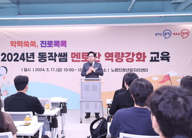 2024 동작쌤 멘토단 역량강화 교육. 동작구(구청장 박일하)는 지역 내 대학생이 멘토가 되어 중·고교생에게 1:1 맞춤형 학습 멘토링을 제공하는 ‘동작쌤 멘토링’을 8월부터 12월까지 본격 운영한다고 밝혔다.