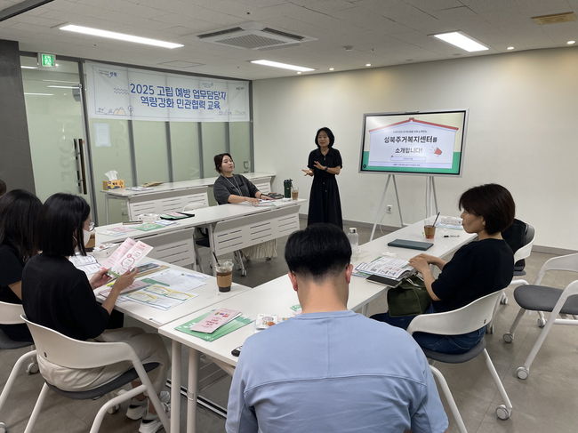 서울 성북구가 고독사와 사회적 고립가구의 선제적 발굴과 지원 강화를 위해 8월 6일부터 14일까지 총 5회에 걸쳐 ‘고립 예방 업무담당자 역량강화 민관협력 교육’을 실시했다고 밝혔다.