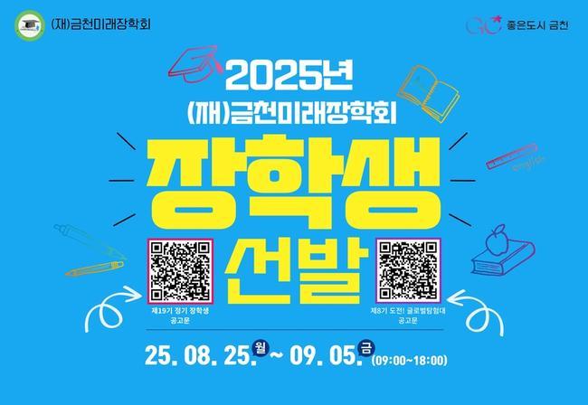 금천구(구청장 유성훈)는 재단법인 금천미래장학회(이사장 박준식, 이하 장학회)가 2025년 장학생 선발 접수를 9월 5일까지 진행한다고 밝혔다.