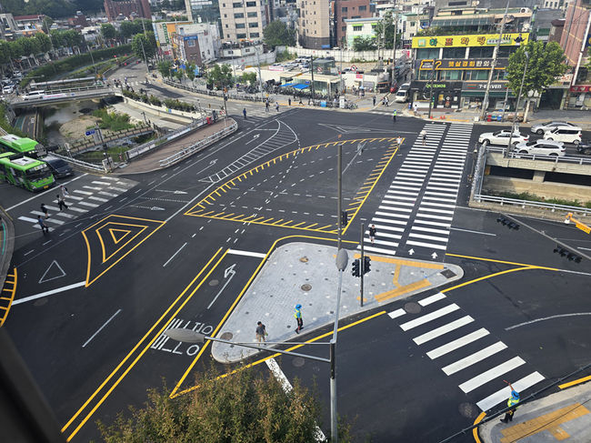 관악구, 미림여고 교차로에 횡단보도 신설…보행 편의 개선 - 신림선 서울대벤처타운역·대학동 상권 연결 강화 - 교통섬 조성·신호체계 개선으로 교통 흐름 최적화 - 안전시설물 확충해 보행자 중심 환경 조성