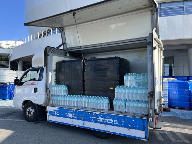 9월 5일, 구로구가 강릉시에 긴급 지원한 2리터 생수 5천 병이 실린 트럭.