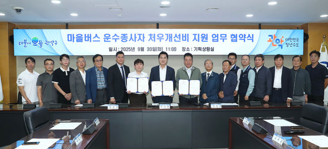 관악구, 마을버스 운수종사자 처우개선 업무협약 체결 - 매월 30만 원 처우 개선비 지원으로 인력난 해소 기대 - 구·운수사·종사자 3자 협약으로 제도적 기반 마련 - 2026년부터 운수 서비스 평가 반영해 투명성 강화