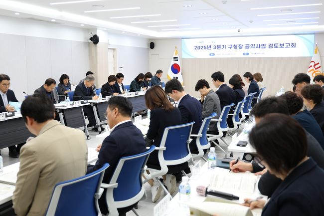 10월 23일 구청 창의홀, `2025년 3분기 민선8기 공약사업 검토보고회` 개최 모습.구로구는 구청 창의홀에서 ‘민선8기 3분기 공약사업 검토보고회’를 열고 95개 공약사업의 추진 현황과 보완 과제를 공유했다고 4일 밝혔다.