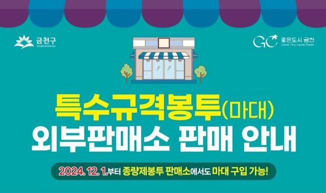 금천구(구청장 유성훈)가 이번 달 1일부터 특수규격봉투(마대)를 종량제봉투 지정판매소로 확대해 판매한다고 밝혔다.