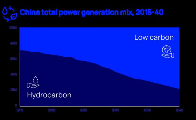 중국은 2028년까지 전력의 50%를 수력, 태양열, 풍력, 원자력, 에너지 저장 등 저탄소 에너지에 의존한다는 목표로 에너지 전환을 추진 중이다(출처: 우드맥킨지 렌즈)